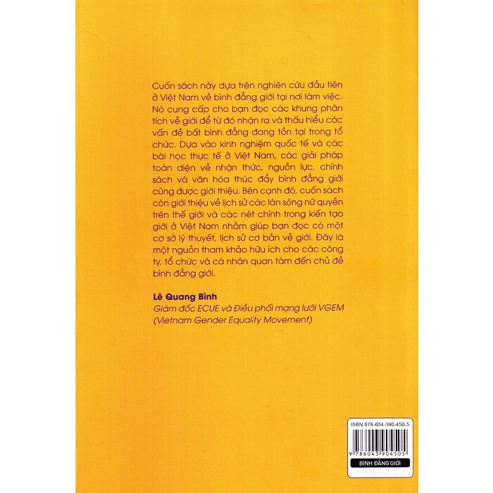 Với những lý do đó, cuốn sách Bình đẳng giới tại nơi làm việc – những câu chuyện và giải pháp trong khu vực Việt Nam và trên thế giới được nhóm tác giả ECUE tổng hợp từ một dự án nghiên cứu nhằm xác định các cơ hội và trở ngại chính đối với doanh nghiệp trong việc áp dụng các chính sách bình đẳng giới và Tủ sách Phụ nữ tùng thư (Tủ sách Giới và Phát triển) Nhà xuất bản Phụ nữ Việt Nam tuyển chọn, phát hành giới thiệu đến bạn đọc.