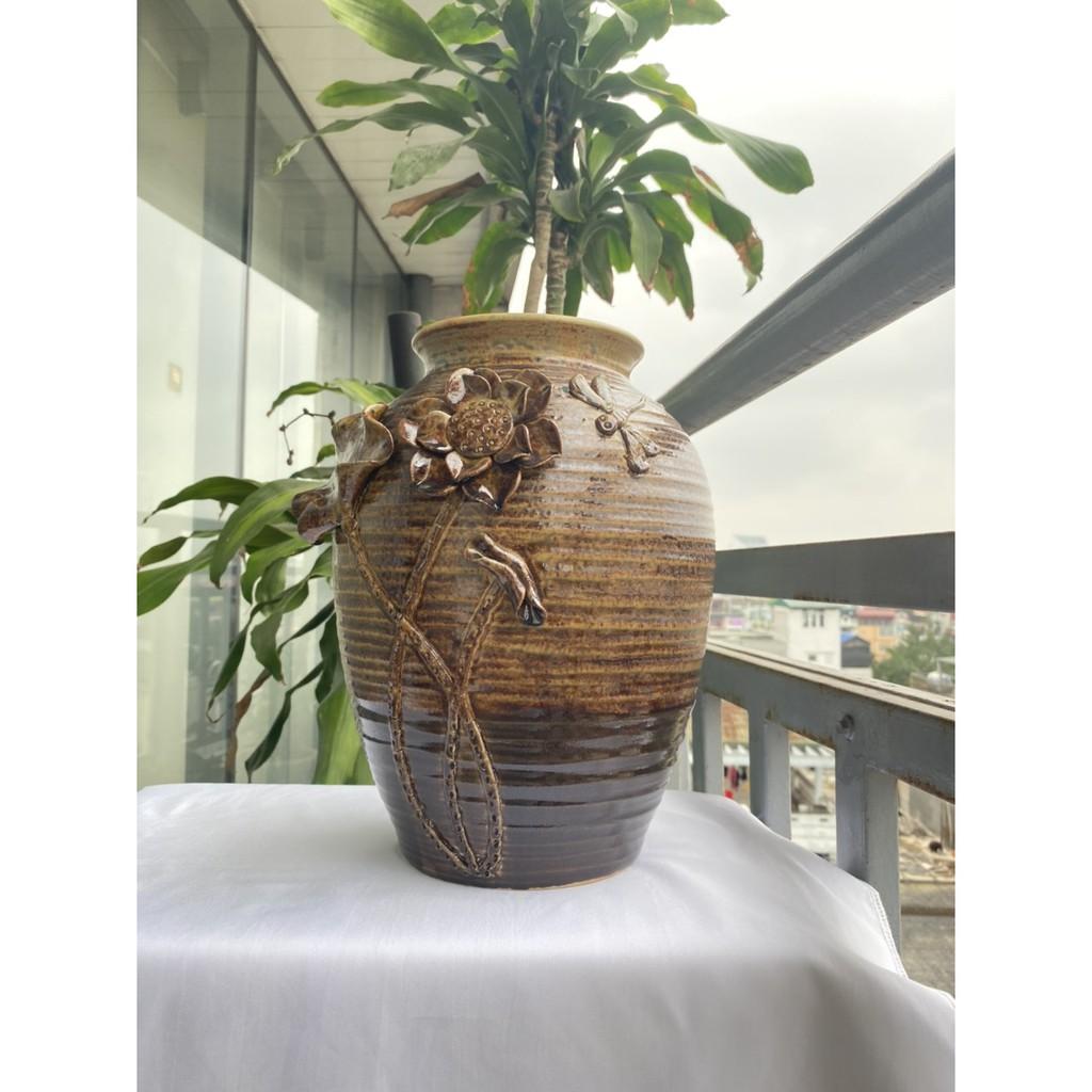 Vò men rạn cắm hoa xinh đẹp lắm ạ Cao 30cm Em có 3 hoạ tiết cho các chị chọn nhé : chuồn kim , hoa phù dung , sen Giá : 490k