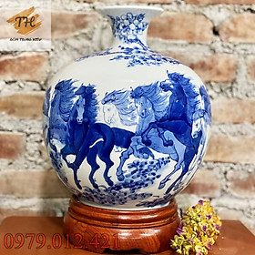 ✨Bình hút tài lộc Bát Tràng men lam hoạ tiết vẽ tay (tặng kèm chân gỗ Hương)