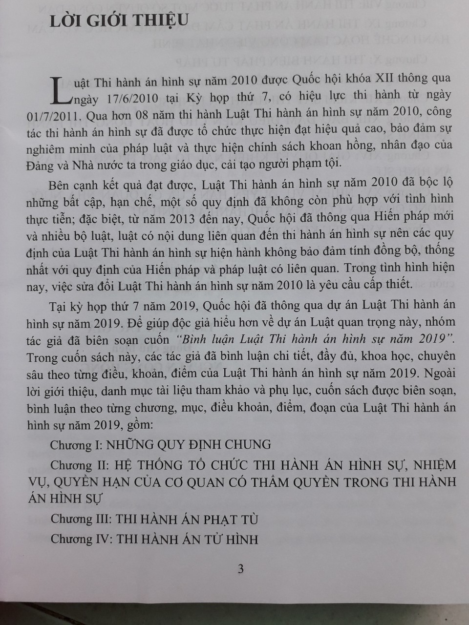 BÌNH LUẬN LUẬT THI HÀNH ÁN HÌNH SỰ NĂM 2019 Tác giả: Thượng Tướng LÊ QUÝ VƯƠNG - Thứ Trưởng Bộ Công An Trung Tướng NGUYỄN VĂN SƠN -