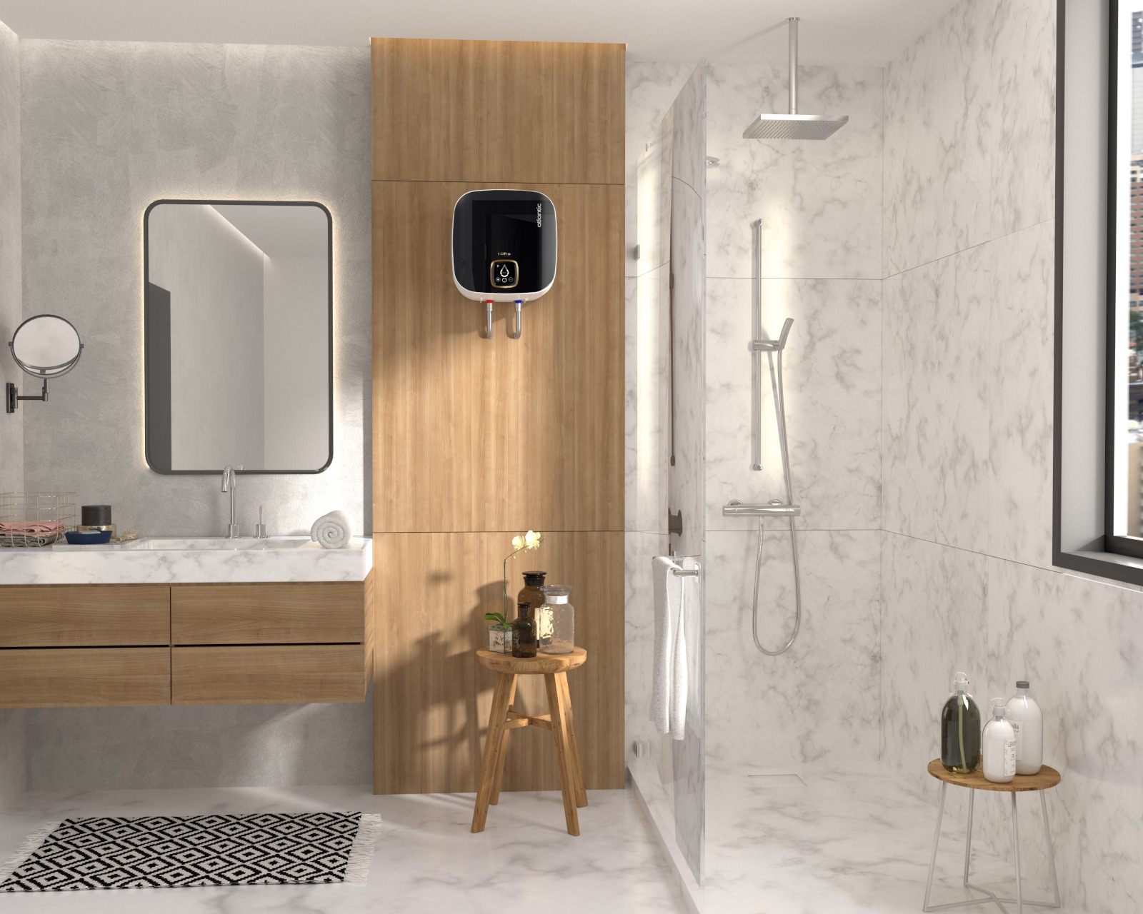 Sản phẩm cơ siêu bền và không bị ảnh hưởng độ ẩm cao trong nhà tắm. Được trang bị chống giật RCD an toàn tuyệt đối: được chứng nhận bởi TUV Rheinland và CQC Bầu