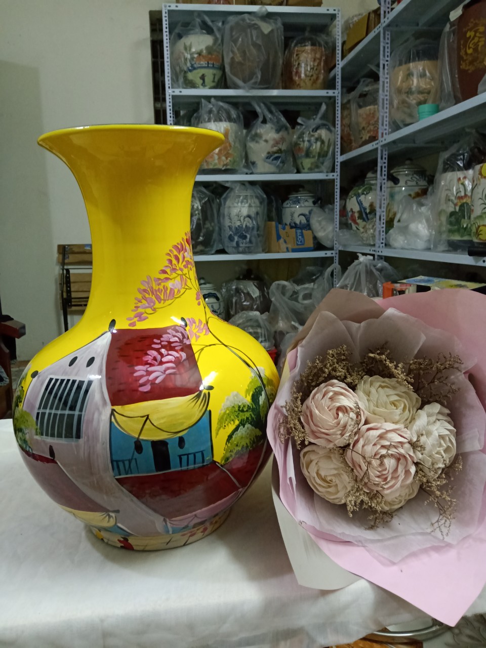 ✨Bình tỏi cắm hoa gốm sứ Bát Tràng vẽ cảnh phố cổ