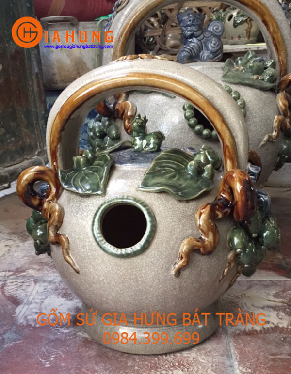 Bình vôi cỡ đại men rạn và men xanh ngọc , gốm sứ cao cấp bát tràng .