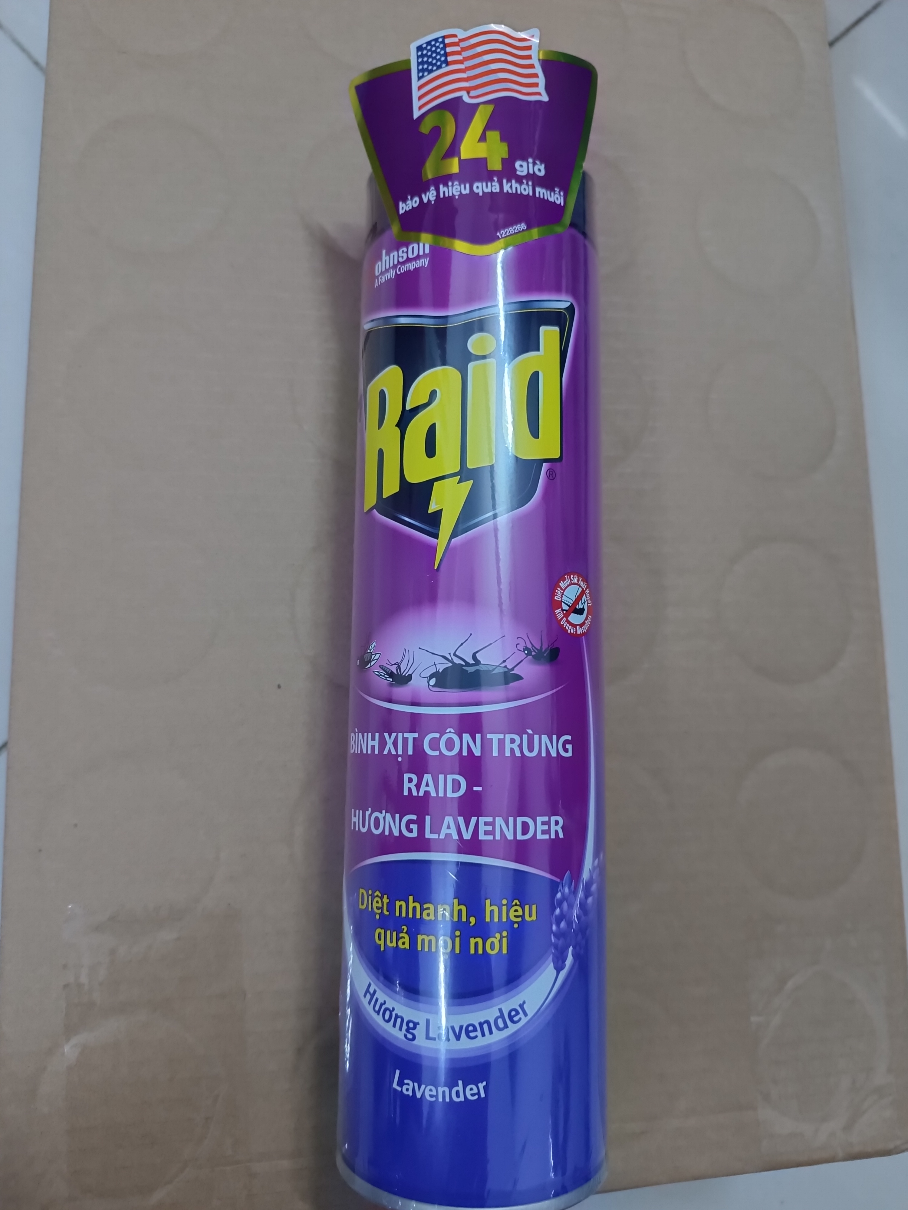 Giúp diệt muỗi nhanh mọi nơi, mọi ngóc ngách. Bình xịt côn trùng Raid là thương hiệu bình diệt côn trùng được nhiều người ưa chuộng vì hiệu quả, an toàn khi sử dụng. Bình xịt muỗi Raid hương lavender 600ml bảo vệ gia đình bạn khỏi sốt xuất huyết và hương lavender dễ chịu Thương hiệu Raid (Việt Nam) Sản phẩm Bình xịt muỗi Mùi hương hương Lavender Dung tích 600ml Nơi sản xuất Việt Nam Sản phẩm này là tài sản cá nhân được bán bởi Nhà Bán Hàng Cá Nhân và không thuộc đối tượng phải chịu thuế GTGT. Do đó hoá đơn VAT không được cung cấp trong trường hợp này.