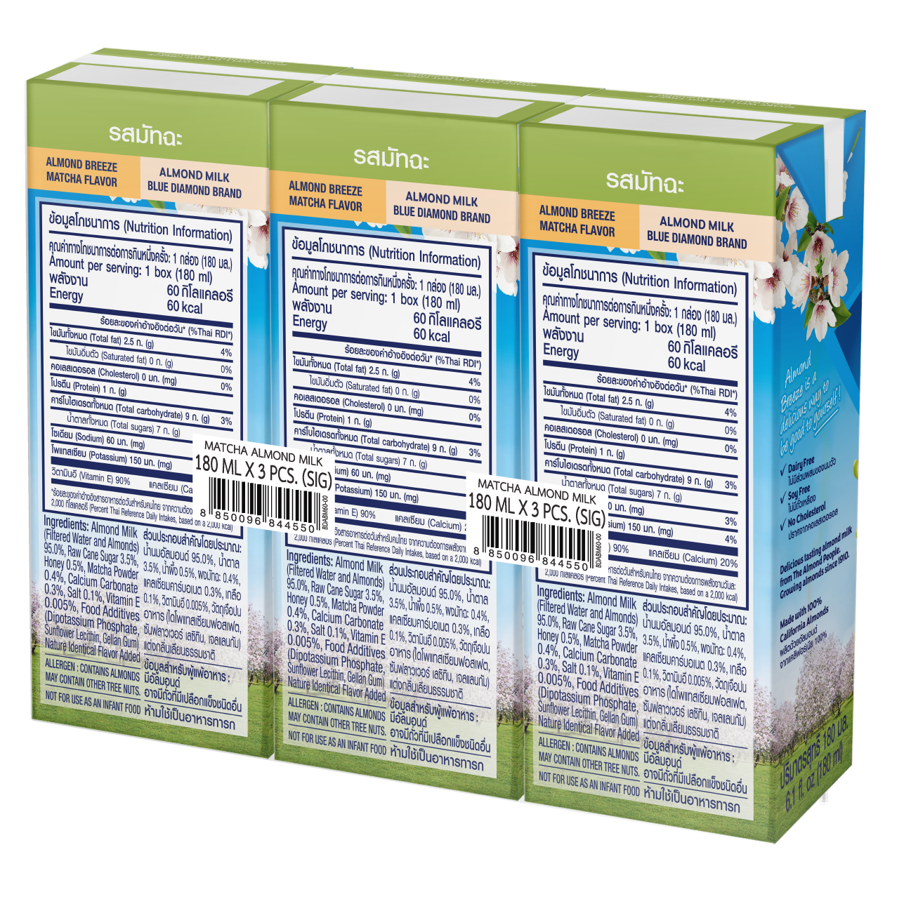 ALMOND BREZZE tự hào là sản phẩm sữa hạt hạnh nhân có SẢN LƯỢNG TIÊU THỤ SỐ 1 TẠI MỸ và vinh dự là SẢN PHẨM SỮA HẠT DUY NHẤT được phục vụ trong bữa chính TRÊN CHUYẾN BAY KHAI TRƯƠNG TRỰC TIẾP ĐẦU TIÊN VN98 TỪ VIỆT NAM SANG MỸ. Sự kết hợp độc đáo từ bột trà xanh nguyên chất của Nhật Bản và hạnh nhân tươi từ Mỹ đã tạo nên ALMOND BREEZE MATCHA giàu chất xơ, diệp lục tố và vitamin. Sữa hạt hạnh nhân ALMOND BREEZE (Sản phẩm của Tập đoàn BLUE DIAMOND – Mỹ) là thức uống bổ dưỡng hàng ngày tốt cho sức khỏe. Đặc biệt THÍCH HỢP VỚI KHÁCH HÀNG BỊ DỊ ỨNG VÀ KHÔNG DUNG NẠP ĐƯỢC ĐƯỜNG SỮA (Lactose); những người ăn chay; phụ nữ mang thai và cho con bú với thành phần dưỡng chất giàu Canxi và Vitamin E; không Cholesterol và không chứa các thành phần từ đậu nành và sữa. Chiết xuất hạnh nhân lên đến 94% ALMOND BREEZE MATCHA giúp bạn cảm nhận trọn vẹn tinh túy chất lượng hạnh nhân từ Mỹ. Sữa hạt hạnh nhân ALMOND BREEZE là sản phẩm sữa hạt tốt cho sức khỏe của bạn và gia đình bạn vì: