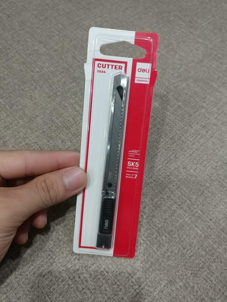 Dao rọc giấy Deli E2066 Thông Tin Sản Phẩm Kích thước: 125×15×11MM (lưỡi dao) Lưỡi dao bằng thép hợp kim sk5, nhọn và sắc bén Thiết kế phần nắp đậy phía sau giúp loại bỏ