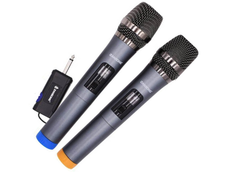 Bộ Micro không dây zansong V19 là một sản phẩm có thiết kế đặc biệt cho ứng dụng Karaoke.Tần số đáp ứng phù hợp cho giọng hát với tầm trung dầy và ấm, kiểm soát dải tần số cao, giảm thiểu hiện tương phản hồi âm thanh,làm cho hiệu suất âm thanh hoàn hảo hơn. Với mọi bộ  thường phải đi kèm với một đầu thu rất cồng kềnh,  có thiết kế đột phá gọn nhẹ tính di động cao ta chỉ cần cắm đầu thu nhỏ gọn của bộ míc vào các thiết bị âm thanh là ta có thể thỏa sức ca hát, với khoảng cách thu bắt sóng lên tới 20m. Âm thanh chuẩn xác Bộ Microphone không dây Zangsong V19 được thiết kế để hạn chế tối đa hiện tượng âm thanh bị nhiễu loạn, Âm thanh chuẩn xác và ít bị bể tiếng nhất. Zangsong V19 được trang bị hệ thống điều chỉnh âm lượng trên bộ tiếp sóng Công tắc On/Off nằm giữa thân micro Phím điều khiển On/Off được bố trí ngay giữa thân micro có màn led hiển thị tần số mic rất đẹp ( hình trên) , chỉ cần gạt tay lên xuống là có thể tắt bật âm thanh, rất tiện lợi. Dùng cho nhiều mục đích khác nhau Microphone không dây Zangsong V19 có thể dùng để hát karaoke, nói chuyện trong nhà, trên sân khấu và ngay cả ngoài trời. Phụ kiện di theo bộ mic gồm: 2 Micro, 1 bộ thu phát tín hiệu, 1 cab sạc, 2 đôi pin A, 1 đầu cắm chuyển đổi tặng thêm bông lọc âm và đế chống lăn.