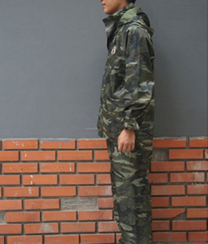 -Áo mưa bộ - Bộ áo đi mưa , vải dù cho người lớn 3XL ( 65 - 80kg ) , màu lính rằn ri , chống thấm nước , phù hợp cho nam và