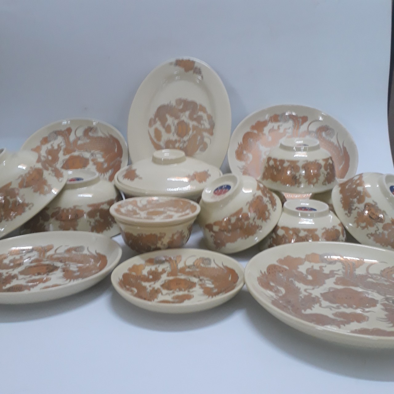 Mua tại TiktokBỘ BÁT ĐĨA THỜ CÚNG ĐẦY ĐỦ GỒM CÁC CHI TIẾT SAU: 6 bát cơm nhỏ rộng 10 cm, cao 4 cm kèm 1 bát nước chấm nhỏ hơn chút xíu. men mầu Vàng Họa tiết của bộ này có viền kim loại ở himhf tượng Rồng Phượng như sau 6 đĩa tròn có kính thước to nhỏ khác nhau và 1 đĩa bầu dục. 2 bát tô nhỏ đựng canh kèm 1 âu đựng cơm có nắp đậy xinh xắn. Tất cả cho vào 1 hộp giấy sang gọn chắc chắn có ghi nơi sản xuất và nguồn gốc xuất sứ rõ ràng. Shop tặng thêm 1 bộ đũa thờ gỗ họa tiết Song Long và bộ chén đĩa thờ cúng Bộ bátđĩa thờ cúng bằng sứ men lam hoa tiết Rồng Phượng chi tiết, tinh xảo và thê lớp viền kim loại để thêm phần linh thiêng. Đây là vật dụngvô cùng cần thiết khi dâng cúng tổ tiên, thần linh trong các ngày lễ tết giỗ chạp.