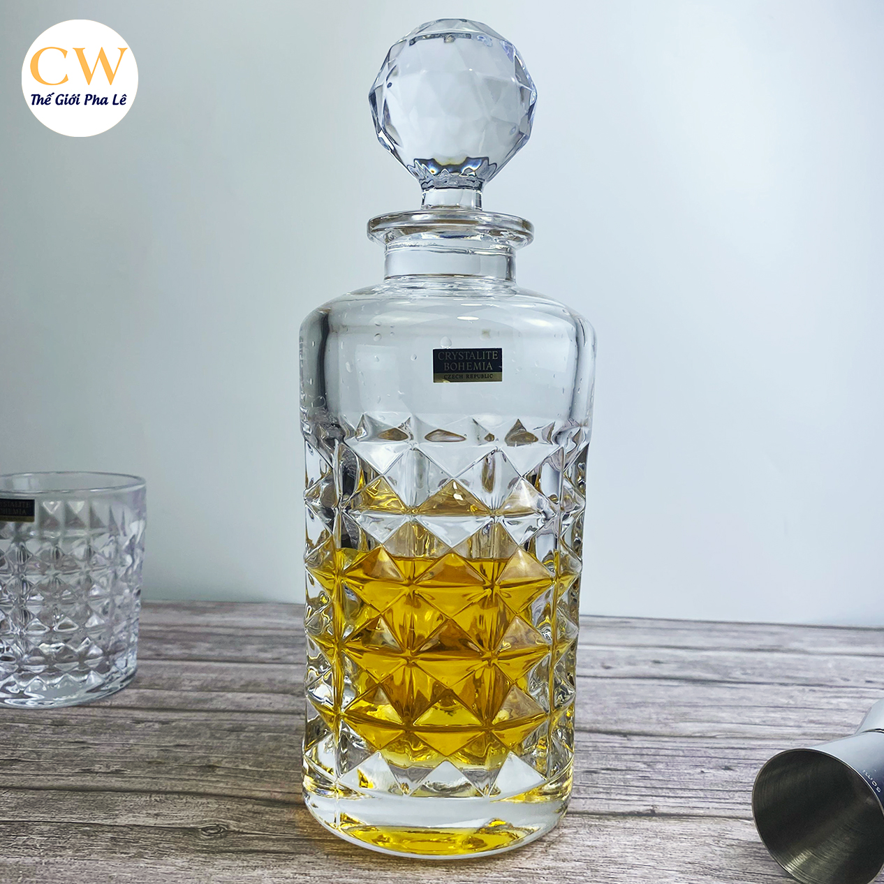 Bộ Bình Ly Rượu Mạnh Whisky Diamond Pha Lê Tiệp Khắc Chính Hãng Bohemia Crystalite