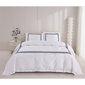 ✨Bộ chăn ra Casa Bello Home - Set Serenity Blue Cotton lụa satin thêu họa tiết thêu 5 món