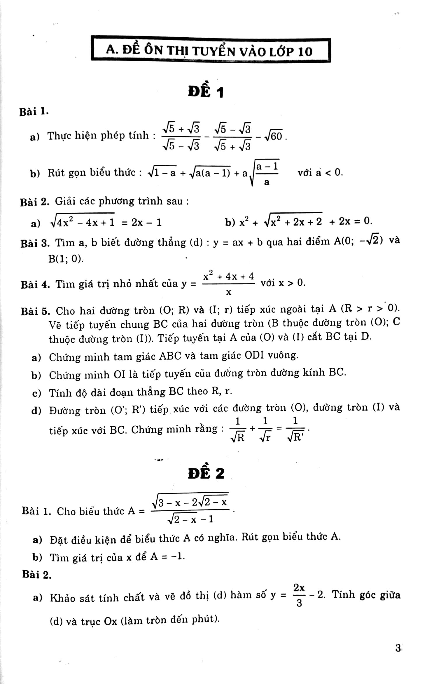 ✨Bộ Đề Thi Môn Toán 9 Vào Lớp 10 (Tái Bản 2023)