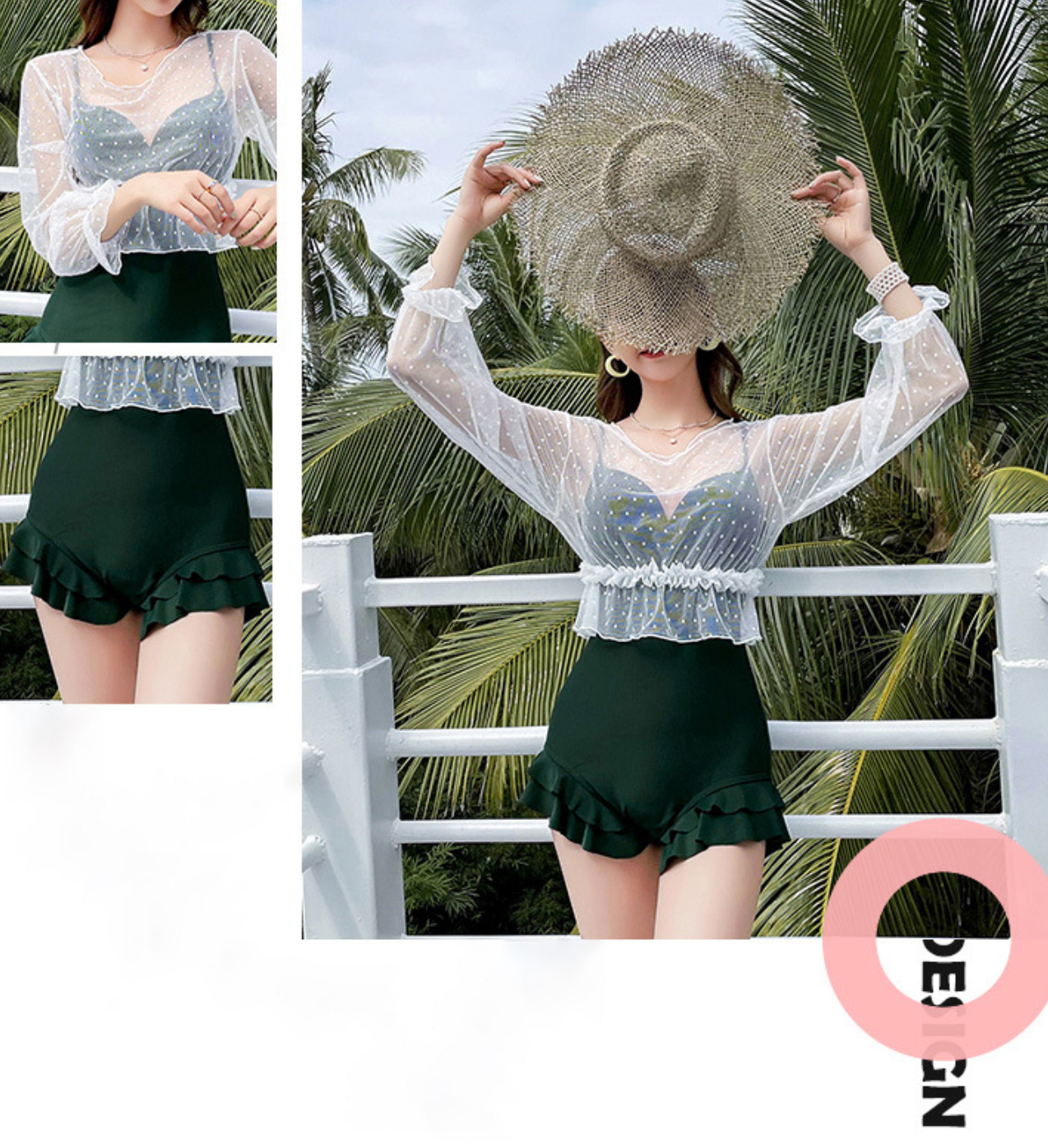 - Mẫu đồ bơi size lớn cho người mập với phong cách gợi cảm trẻ trung, tay ren quyến rũ. - Thiết kế liền thân, váy xòe với quần đùi trong liền trong an toàn