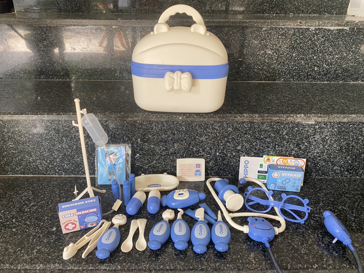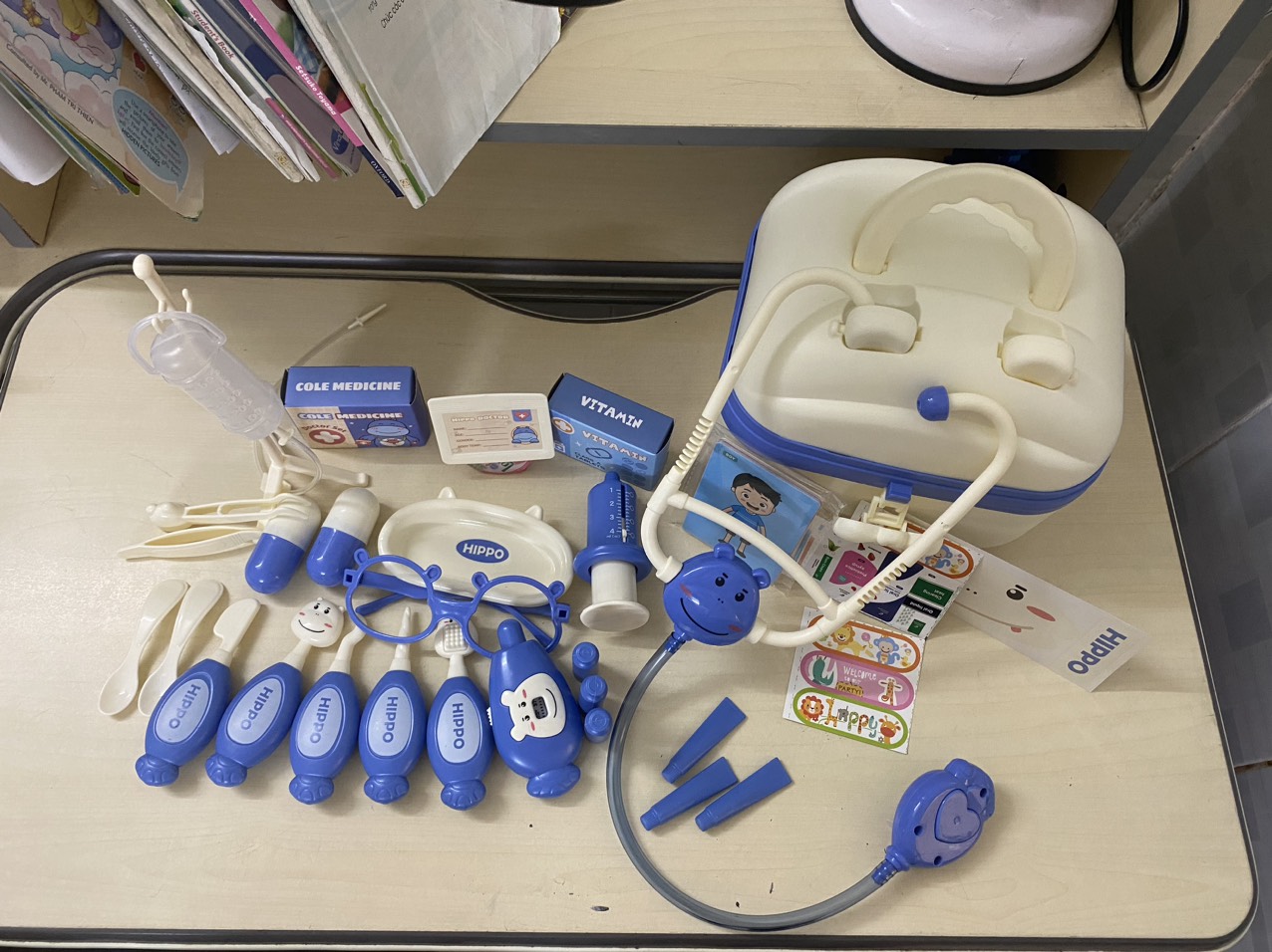 Có thuốc, bàn chải, kem đánh răng và có rất nhiều thiết bị y thật để bé nhập vai làm bác sĩ.