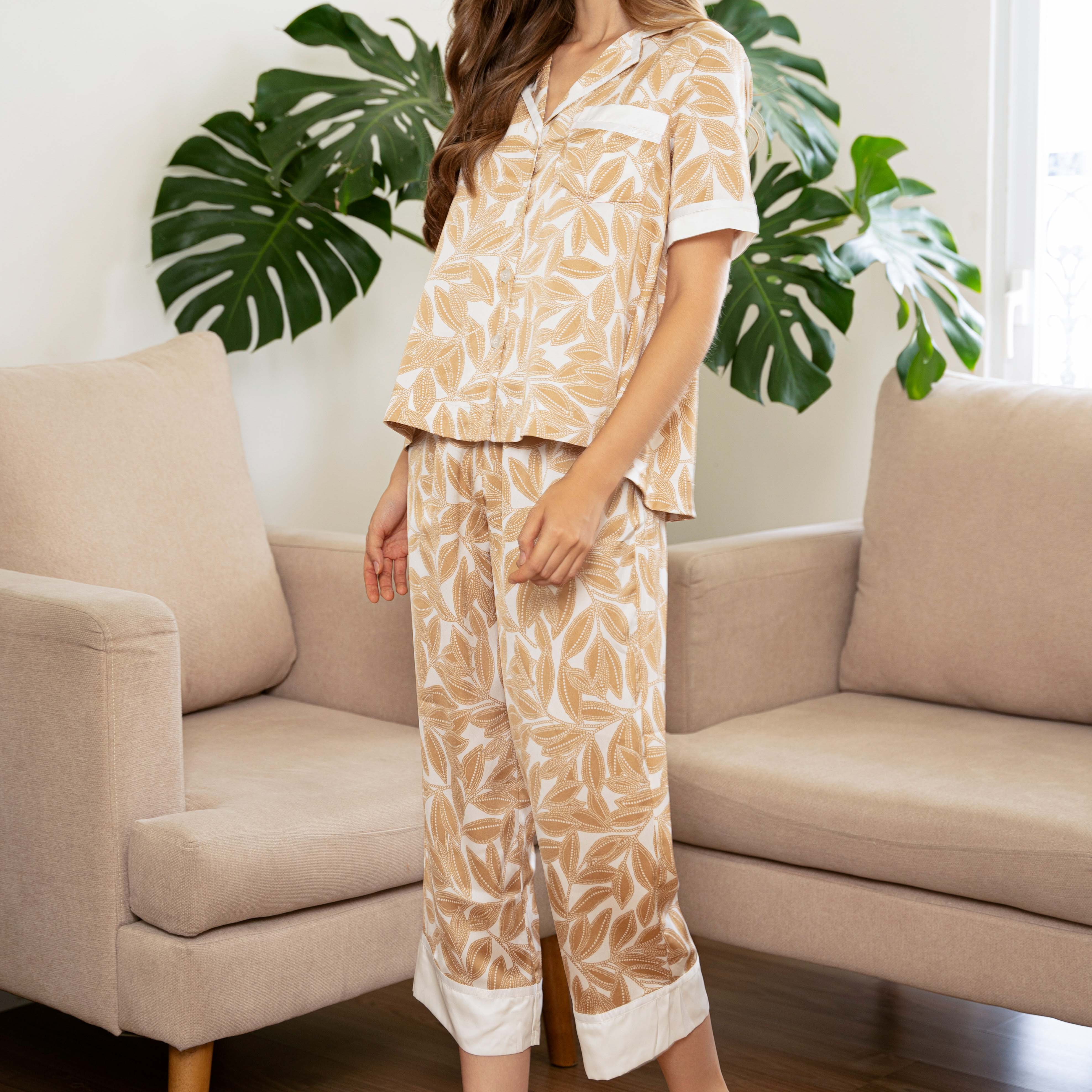 Bộ mặc nhà Lụa Satin Nhật ngắn tay - Hoạ tiết TL BD303
