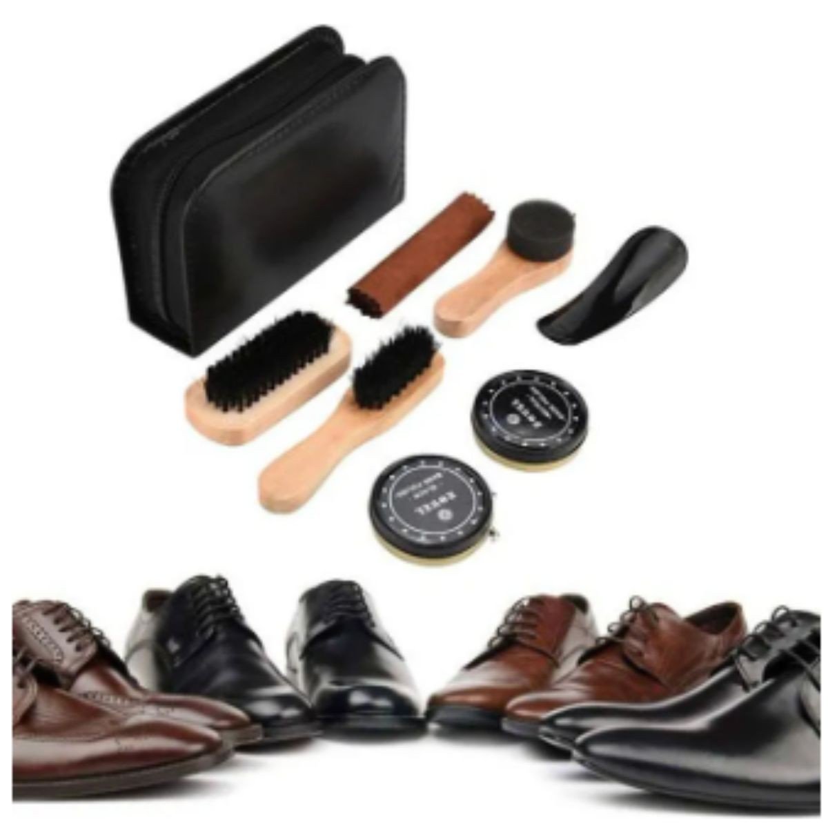 Bộ dụng cụ đánh giày 7 món kèm xi tiện lợi – Gồm đủ bộ si, cọ, nước lau giầy….xi đánh giày tiện lợi. Nhuộm và giữ màu làm sáng bóng giày dép – Bộ