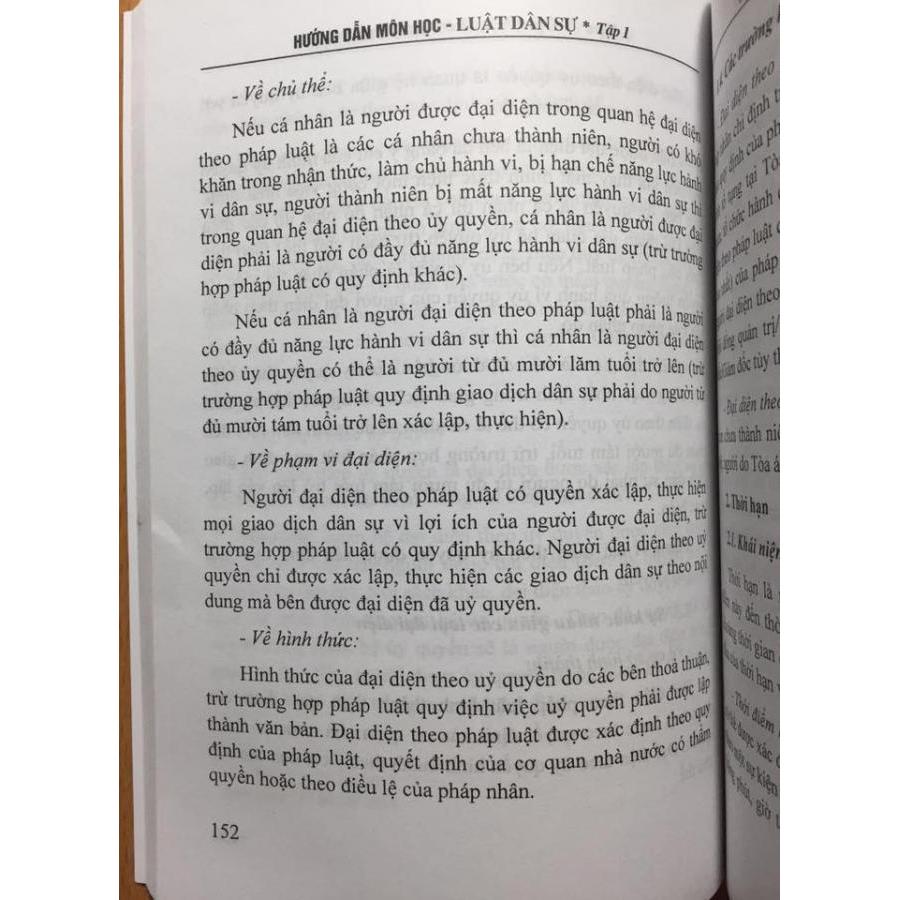 Mua tại TiktokHướng dẫn môn học luật dân sự tập 1 và 2 Tác giả : PGS.TS Phạm Văn Tuyết (Chủ biên) Nhà xuất bản: Tư Pháp Tập 1: Số trang: 436 Khổ 14,5 x20,5 cm Tập 2: Số trang: 576 trang khổ 14,5 x20,5 cm