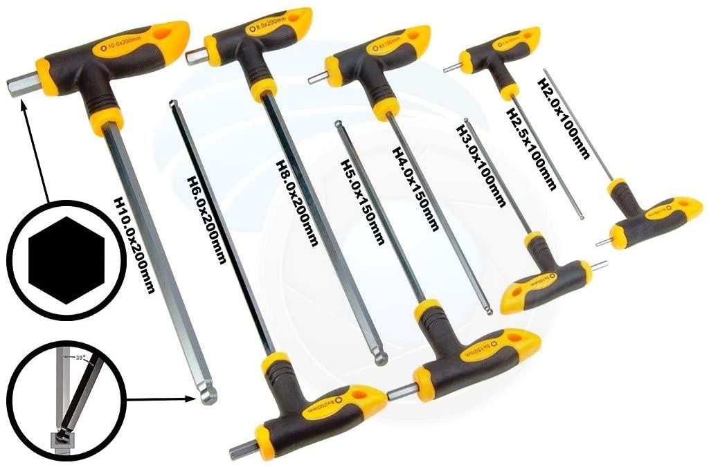 Gồm 7 chi tiết: - 1x Phím L với tay cầm chữ T, Ổ cắm hình lục giác: 2, Chiều dài lưỡi tay cầm chữ T: 100 - 1x Phím L với tay cầm chữ