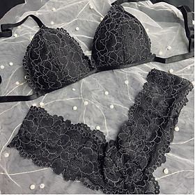 ✨Bộ Nội Y Thiết Kế Ren Cao Cấp Đen Nét Họa Tiết Trắng Có Mút Quần Chữ Y