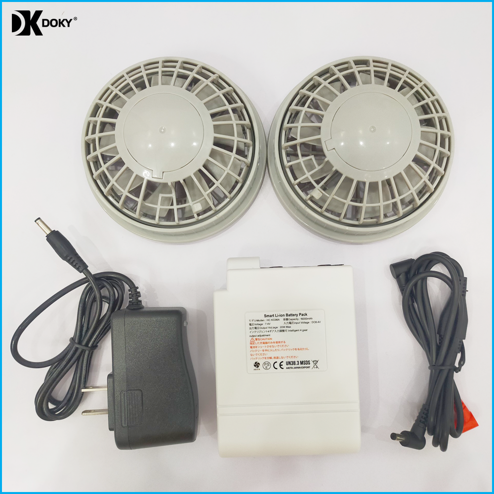 [ PIN 30.000MAH + QUẠT 12V ] Bộ Phụ Kiện Áo Điều Hòa Nhật Bản Cao Cấp [ FULL Bộ Gồm 1 Pin + 2 Quạt + Sạc + Dây Kết Nối ]  Bộ Phụ Kiện Áo Quạt Điều Hòa Nhật Bản DOKY PIN 30.000 MAH, Quạt Không Chổi Than 12V, Thời Gian Chạy 17-19h Ở Mức Cao Nhất - Bảo Hành 12 Tháng