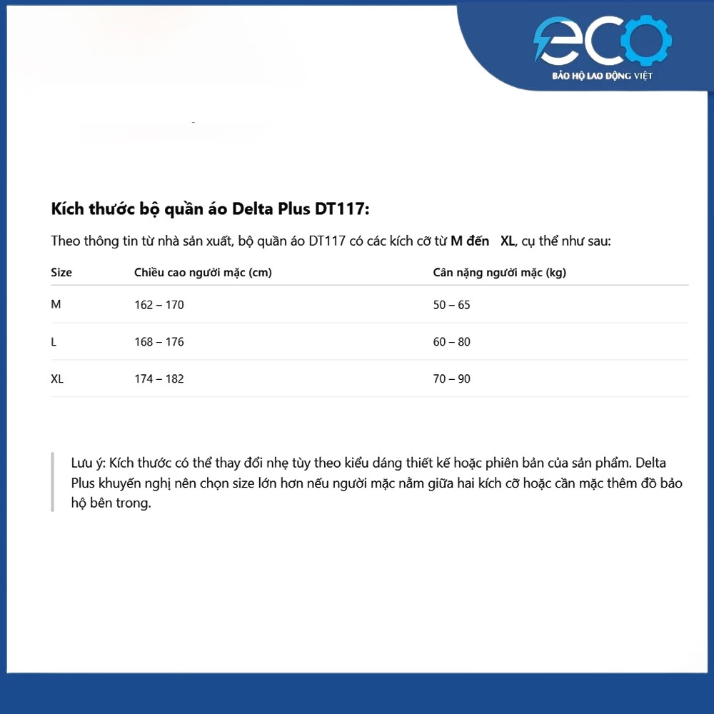 ️ Lưu ý: Quần áo chống hóa chất DT117 là sản phẩm sử dụng một lần, giúp đảm bảo vệ sinh và an toàn cho người sử dụng.