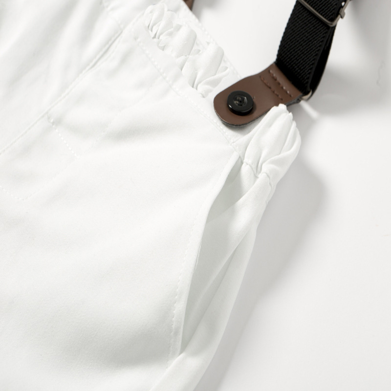 Bộ body sơ sinh bé trai cao cấp, set body sơ mi cộc tay & quần sooc dây đeo công tử dễ thương | MB11