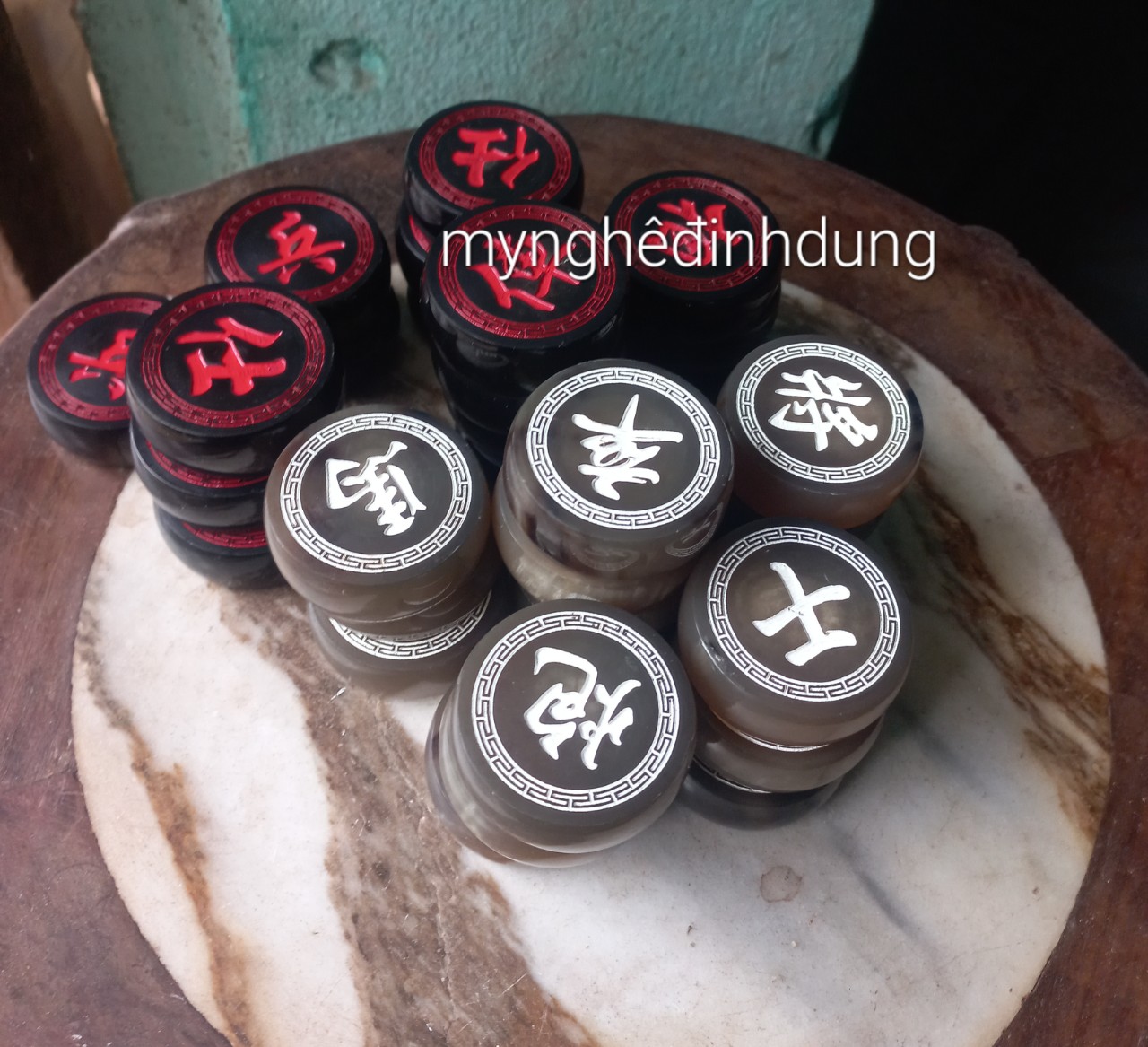 Mua tại TiktokBộ quân cờ tướng được làm bằng chất liệu sừng trắng, sừng đen tự nhiên 100% Kt mặt sừng tròn 3.7×1.2cm _ Quân cờ được chạm khắc tỉ mỉ ,tinh xảo kỳ công Từ những người thợ giàu kinh nghiệm cũng như tay nghề cao trong làng nghề truyền thống.