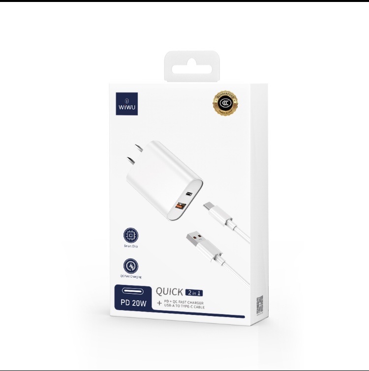 ✨Bộ sạc Wiwu Quick 2 in 1 Wi-U002 USB to Type-C sạc nhanh 20W, có chip thông minh bảo vệ an toàn sạc - Hàng chính hãng