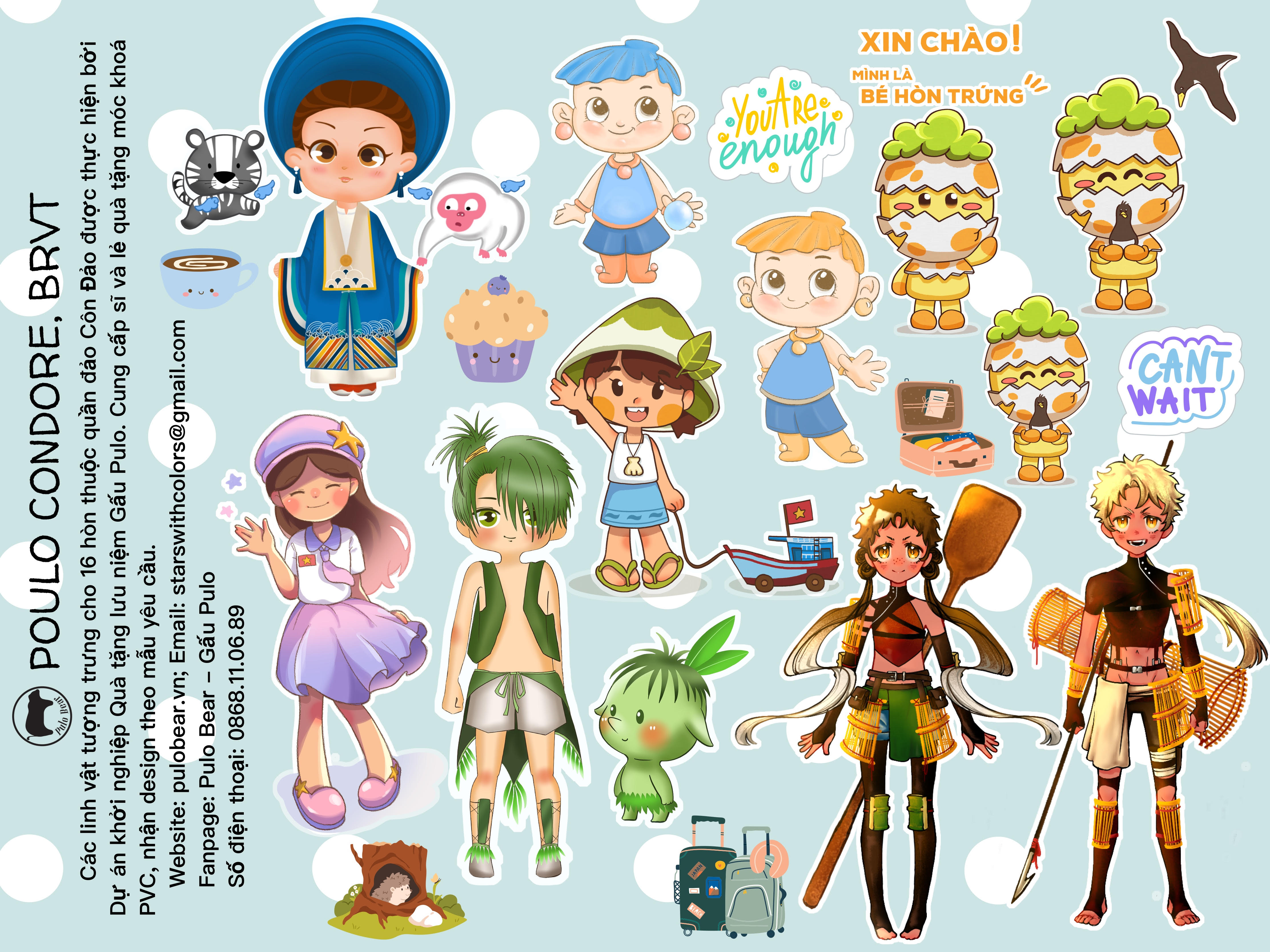 Thiết kế độc quyền: Hình ảnh Gấu Pulo được vẽ với nhiều dáng vẻ dễ thương: cười, vẫy tay, đọc sách, vui chơi…