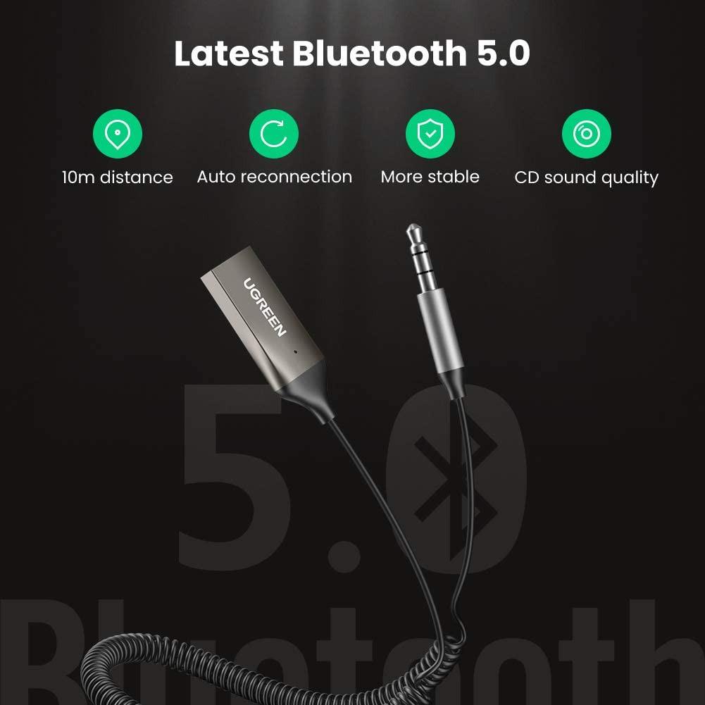 Bộ thu Bluetooth 5.0 cho ô tô, cáp lò xo dài 1,5M hỗ trợ Mic cổng 3.5mm Ugreen 70601 cao cấp