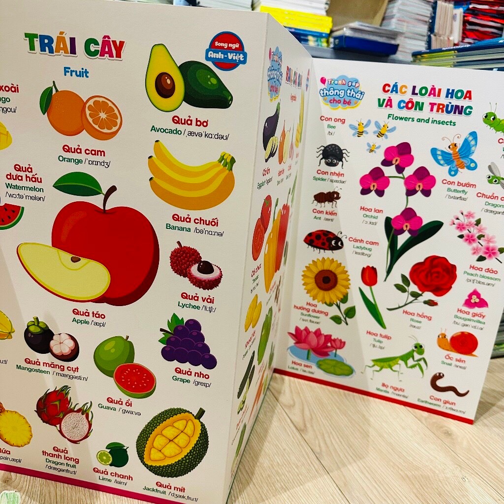 Mua tại TiktokBộ Tranh Gấp Thông Thái Cho Bé - Song Ngữ Anh Việt - 3 Tấm, 6 Mặt, 17 Chủ Đề, Kích Thước 96 x 50cm THÔNG TIN SẢN PHẨM:
