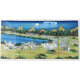 - Kích thước: 50x80 cm gồm 4 tấm( mỗi tấm 20x50 cm)/ 60x120 cm gồm 4 tấm( mỗi tấm 30x60 cm) - Xuất xứ: Sơn mài Việt Nam - Chất liệu: Được làm từ gỗ