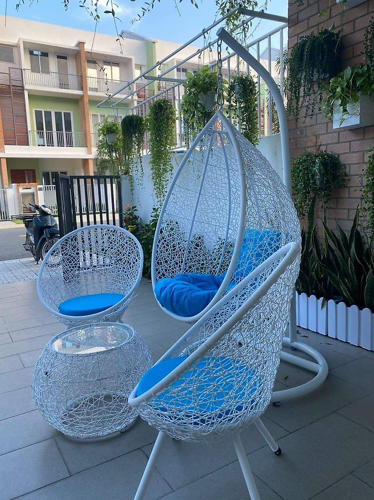 Bộ Xích Đu Rối Khung Trắng Và Ban Công , Đệm Màu Đỏ Tại Shop