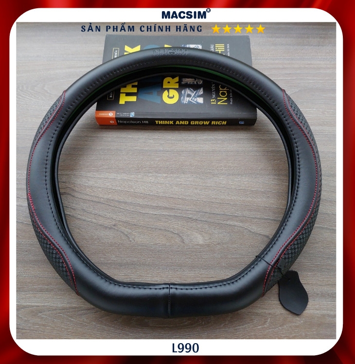 ✨Bọc vô lăng cao cấp Macsim mã Dcut mã L990 màu đen chỉ đỏ