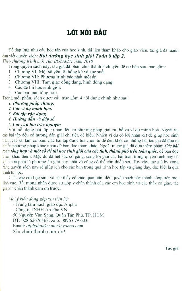 Bồi Dưỡng Học Sinh Giỏi Toán 7 - Tập 2 Nhằm giúp các em học sinh lớp 7 yêu tích toán học hơn thông qua việc giải những bài toán bằng nhiều cách khác nhau. Trong học toán và giải toán, việc tìm thêm những lời giải khác hau cho một bài tóan mang lại sự hứng thú và phát triển tư duy cho học sinh. Từ đó quyển sách được biên soạn với mong muốn giúp các em học sinh lớp 6 yêu tích toán học hơn thông qua việc giải những bài toán bằng nhiều cách khác nhau.