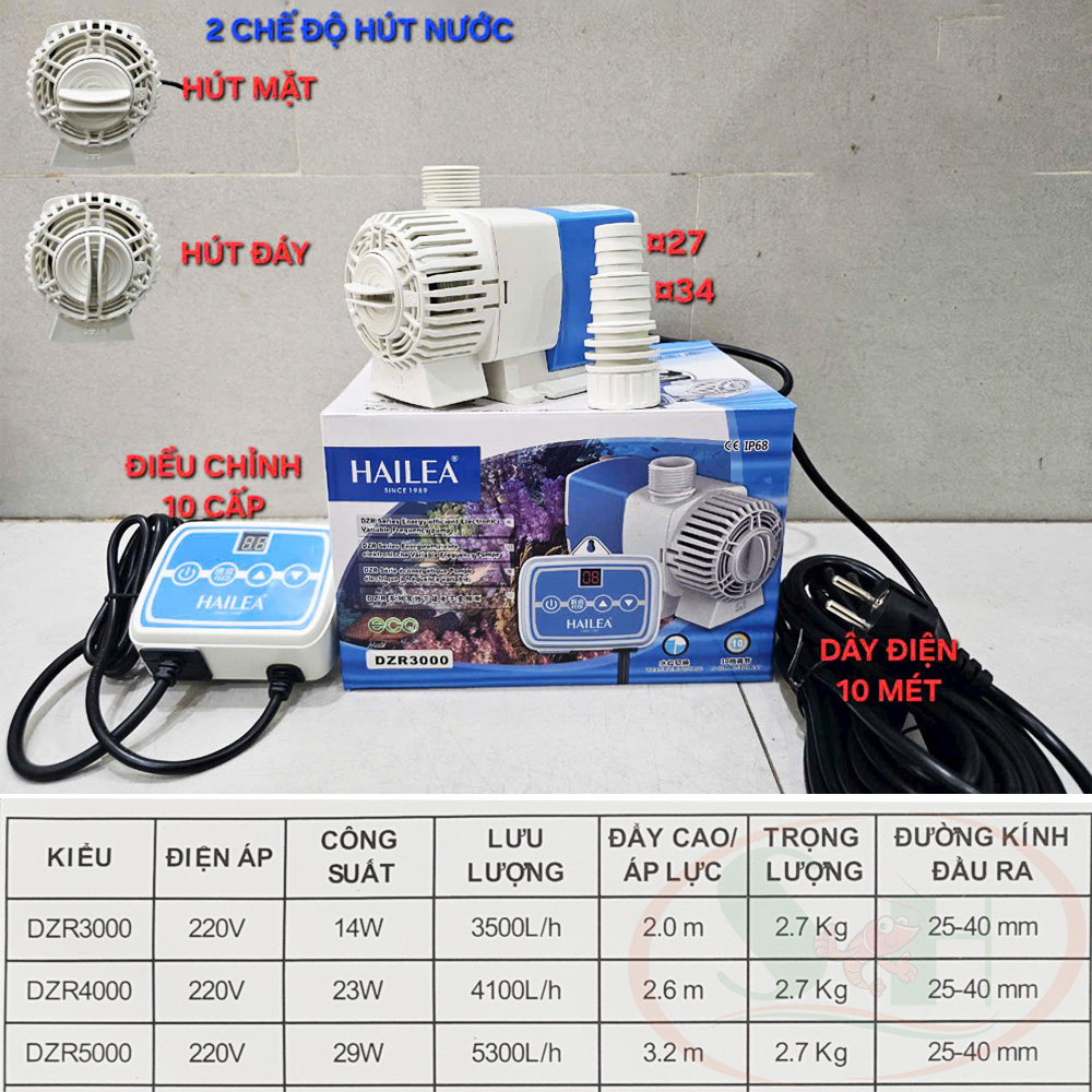 Bơm điện tử Hailea DZR Frequency Pump 3000 / 4000 / 5000 là dòng máy bơm biến tần cao cấp tiên tiến có thể sử dụng được trên cạn và chìm dưới nước, công suất thấp nhưng lực hút thổi mạnh phù hợp cho các hệ thống bể lớn, hòn non bộ...