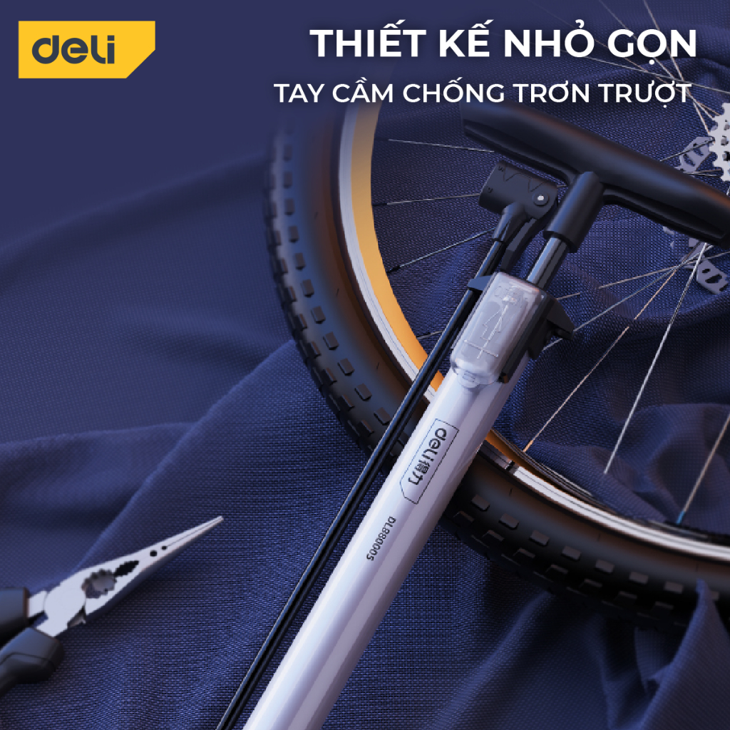 [GIẢM CỰC SỐC] Bơm Xe Đạp Xe Máy Deli Tools Tích Hợp Đồng Hồ Áp Suất Tối Đa ... Chất lượng vượt trội