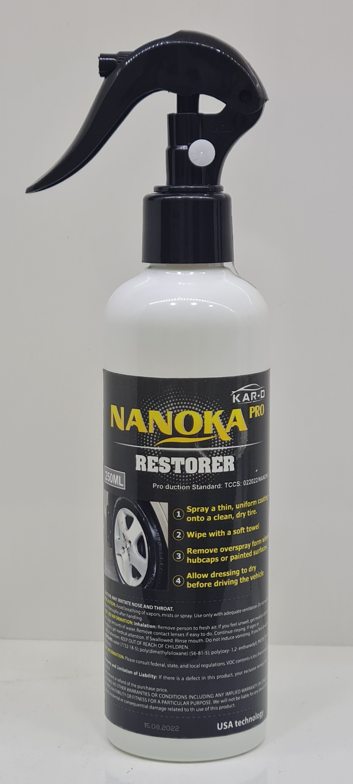 Chai xịt Dưỡng đen bóng lốp Nanoka Pro - sản xuất công nghệ USA, làm sạch và tái tạo độ bóng tự nhiên cho bề mặt cao su của lốp ô tô Thông tin sản phẩm: