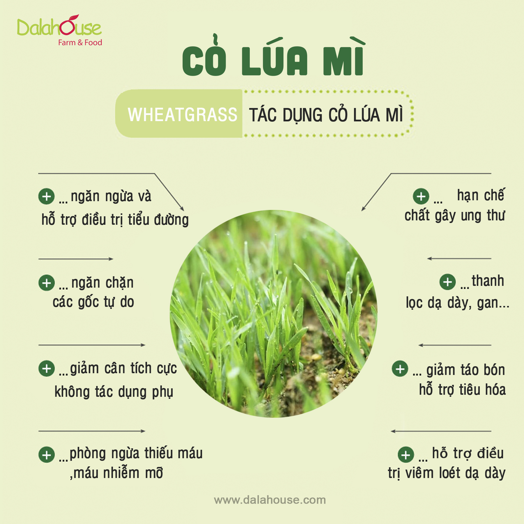 - Dinh dưỡng trong cỏ lúa mì rất dễ bị phá hủy khi nhiệt độ trên 75oC nên khi cho vào cháo/mỳ/phở, làm nguội xuống dưới 75oC rồi mới cho bột rau vào trộn đều