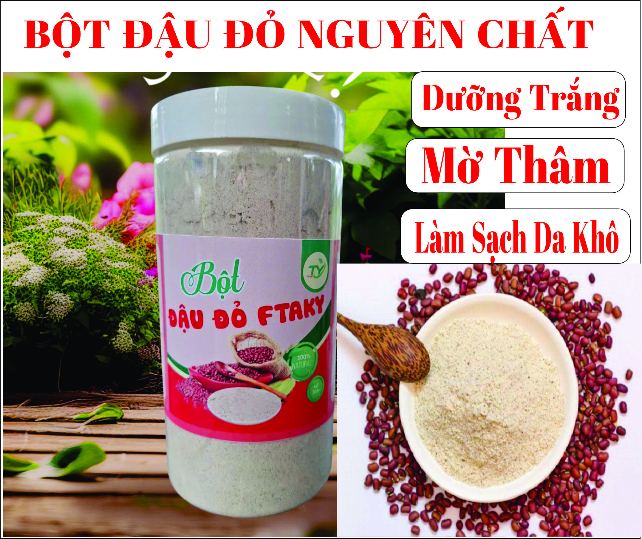 Bột đậu đỏ thành phần từ bột đậu đỏ nguyên chất. Mặt nạ Bột bột đậu đỏ giúp dưỡng trắng da, làm sạch sâu, mờ thâm sạm dùng thường xuyên sẽ mang lại cho bạn 1 làn da sáng mịn và thông thoáng.