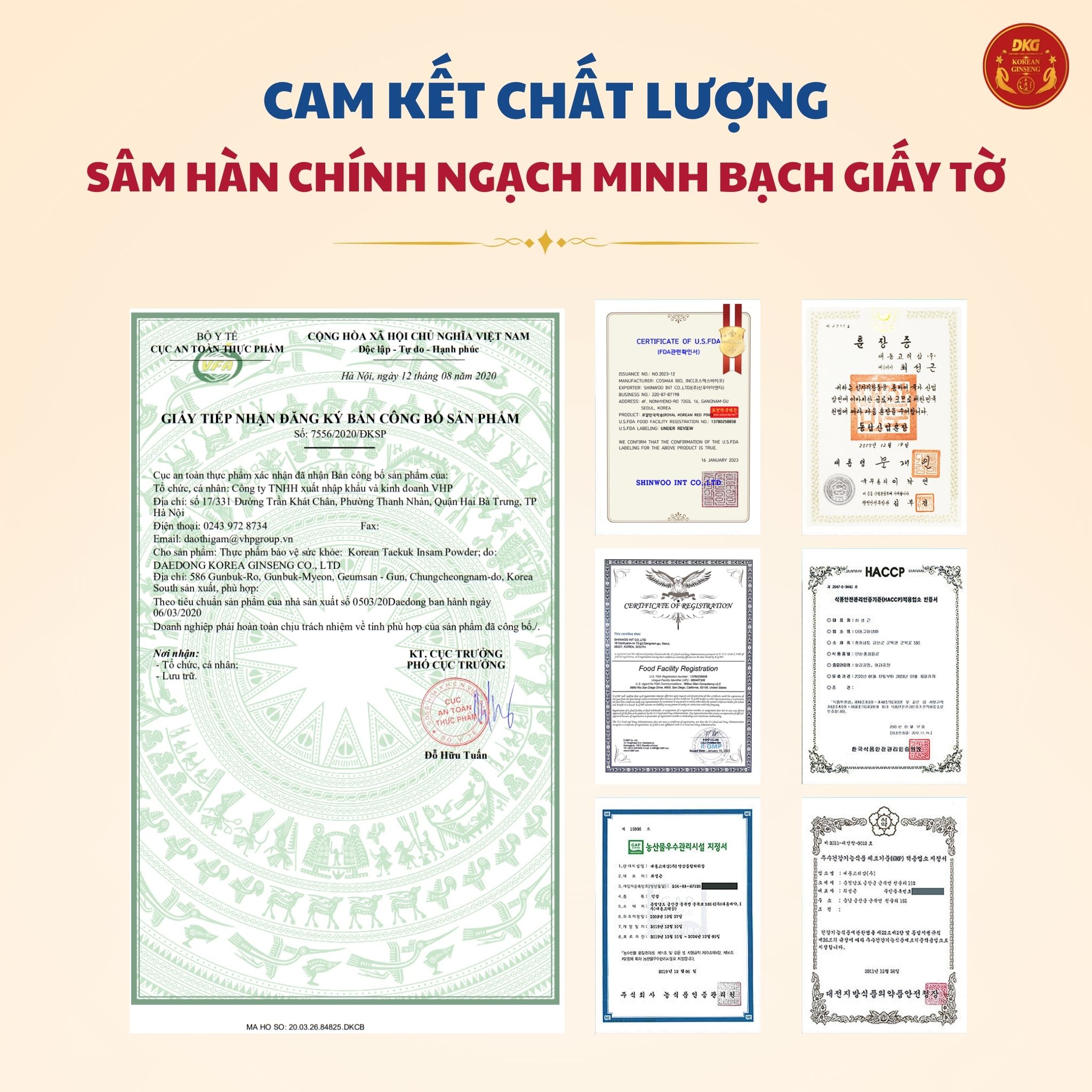 Thông tin về sản phẩm 1. Tên sản phẩm: KOREAN RED GINSENG BIRD’S NEST EXTRACT DKG: YẾN SÀO HỒNG SÂM DKG 2. Thành phần: Chiết xuất hồng sâm (hàm lượng chất rắn 50%, nội địa ), hương