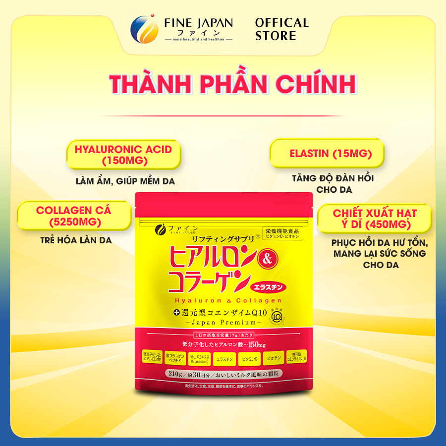 ✨Bột uống Hyaluron & Collagen FINE JAPAN hạn chế lão hóa da gói 210g