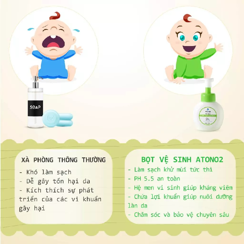 - Trải nghiệm tiện lợi, an toàn: Bọt mịn dễ sử dụng, không gây kích ứng, phù hợp cho các bậc cha mẹ muốn chăm sóc vùng da nhạy cảm của bé một cách nhẹ nhàng và hiệu quả.