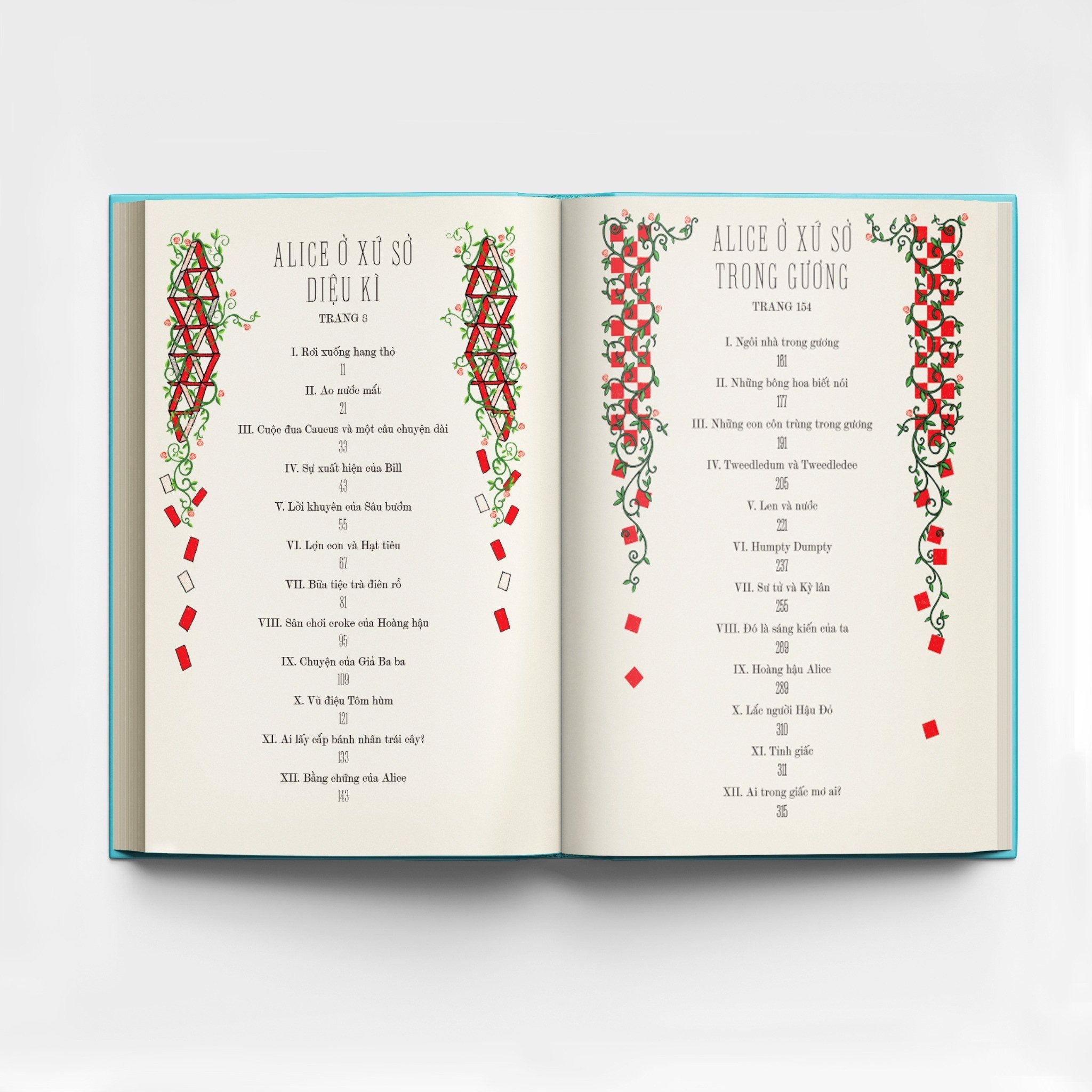 Alice ở xứ sở diệu kì và Alice ở xứ sở trong gương là hai cuốn tiểu thuyết thiếu nhi nổi tiếng của nhà văn người Anh, Lewis Carroll. Ngay khi Alice ở xứ sở diệu kì - phần 1 cuốn sách được xuất bản năm 1865, cuốn truyện đã được đông đảo bạn đọc cả trẻ em lẫn người lớn yêu mến. Bảy năm sau, Lewis Carroll cho ra mắt phần tiếp theo, Alice ở xứ sở trong gương, và ngay lập tức những nhân vật như cặp anh em Tweedledum, Hậu Đỏ, Hậu Trắng…của phần này cũng trở nên nổi tiếng không kém Thỏ Trắng, Sâu bướm, nữ Công tước hay Vua Cơ và Hậu Cơ ở phần trước.