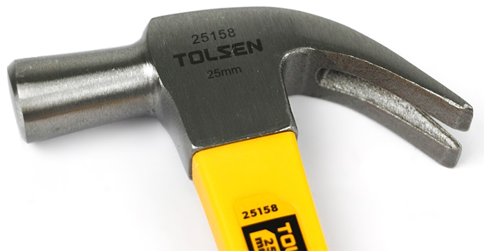 - Búa sừng dê cán nhựa Tolsen được thiết kế 2 đầu: 1 đầu tròn để đóng đinh và một đầu sừng dê dùng để nhổ, tán đinh. Lưỡi búa được thiết kế cải tiến với độ cong và dài phù hợp giúp tăng hiệu quả khi nhổ đinh.
