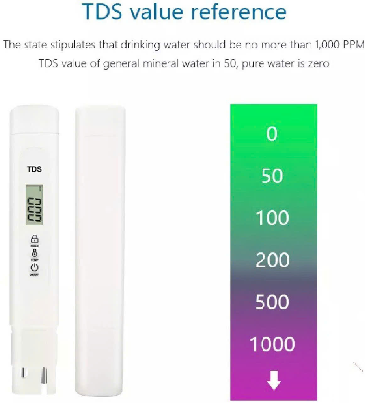 - Chỉ cần lẫn tạp chất thì máy đo sẽ nhận ra và thay đổi điểm số. Theo tổ chức y tế thì nước từ 0-50 TDS là siêu tinh khiết, 50-100 TDS là tinh khiết, 100 - 300 là nấc bình thường và trên đó là bắt đầu có mùi hoặc khó uống. Nước từ 1000 trở lên thì không thể uống được.