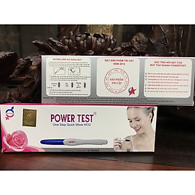 Tên sản phẩm: Que thử thai PowerTest Kích thước test: rộng 5mm Tính năng: Phát hiện thai sớm sau 6 -9 ngày trứng rụng ƯU ĐIỂM: Phát hiện thai sớm sau 6 -9 ngày