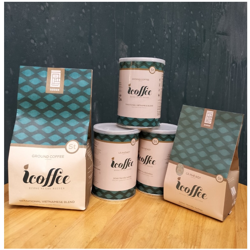 Cà Phê Robusta Truyền Thống icoffee 250g Phù Hợp pha phin, có vị đắng đậm, mạnh, thơm nồng;