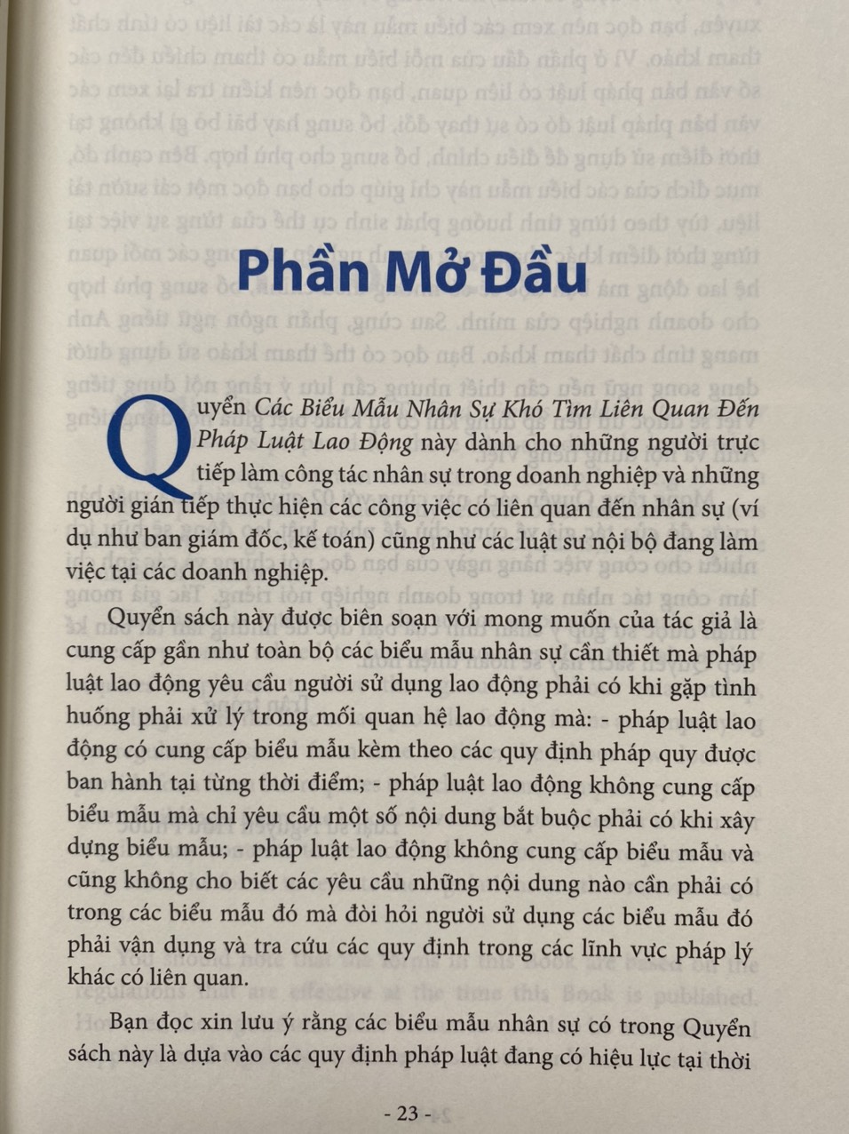 Cuốn sách ” Các Biểu Mẫu Nhân Sự Khó Tìm Liên Quan Đến Pháp Luật Lao Động ” dễ dàng tra cứu và tìm được các thông tin pháp luật lao động hữu ích và thực tế