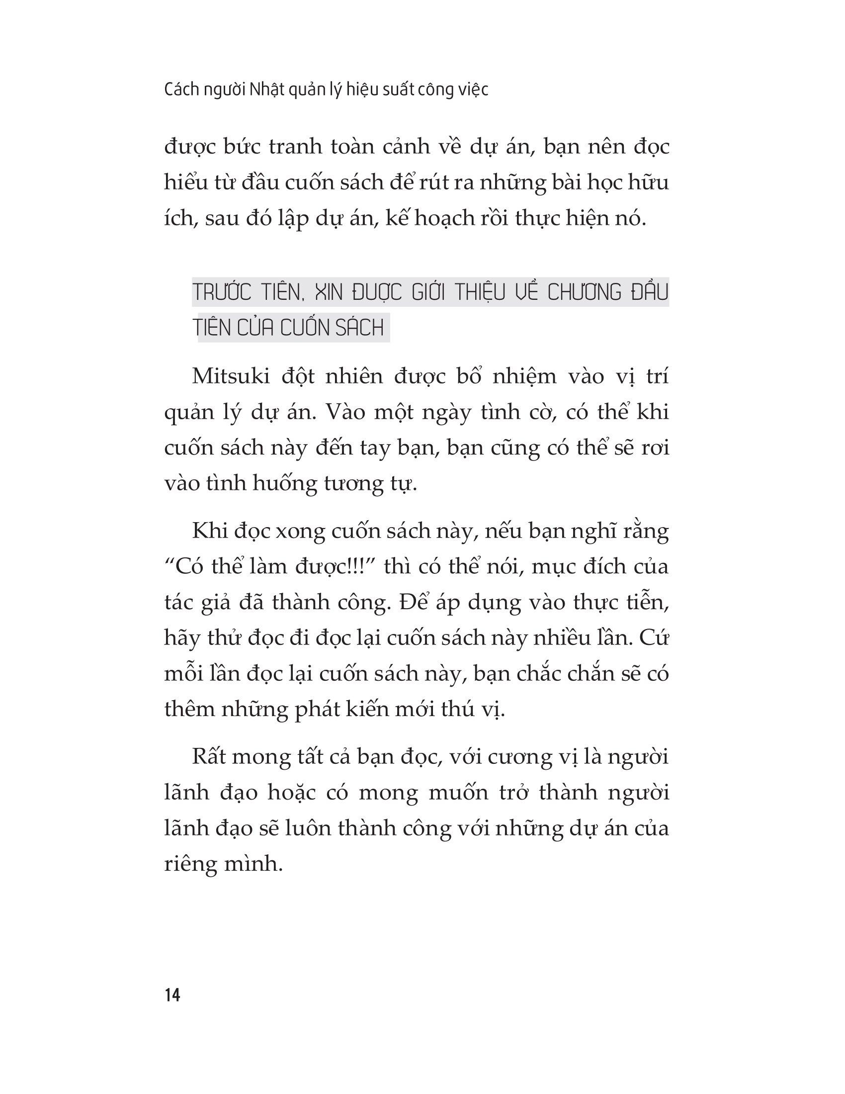 Cuốn sách “Cách người Nhật quản lý hiệu suất công việc” của tác giả Hidenori Shibamoto sẽ truyền đạt những thông tin và kỹ năng hữu ích để mọi nhân sự có thể thành công thực hiện những nhiệm vụ được giao. Cuốn sách giới thiệu các bước thiết yếu để quản lý dự án công việc nhằm đảm bảo tiến độ và kết quả đầu ra, đem lại giá trị cho tổ chức. Đây đích thực là cuốn cẩm nang hướng dẫn tư duy khoa học khi làm việc, những điều cần lưu ý khi lập kế hoạch triển khai dự án, theo dõi tiến độ, quản lý rủi ro và tiến hành cải thiện, từ đó không ngừng nâng cao hiệu suất của cá nhân cũng như cả đội ngũ.
